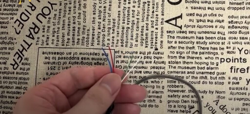 After cutting the insulating rubber, you will see several wires. The red positive wire and the blue positive wire are what we will use next.