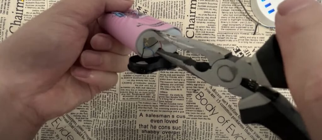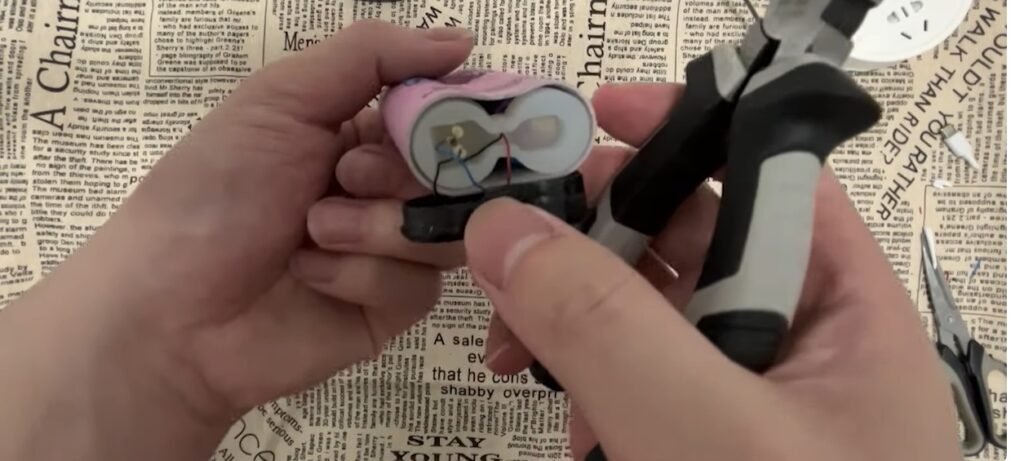 After removing the battery and other components, there will be two parts left inside. We need to use tools to remove them and put the parts back in place.